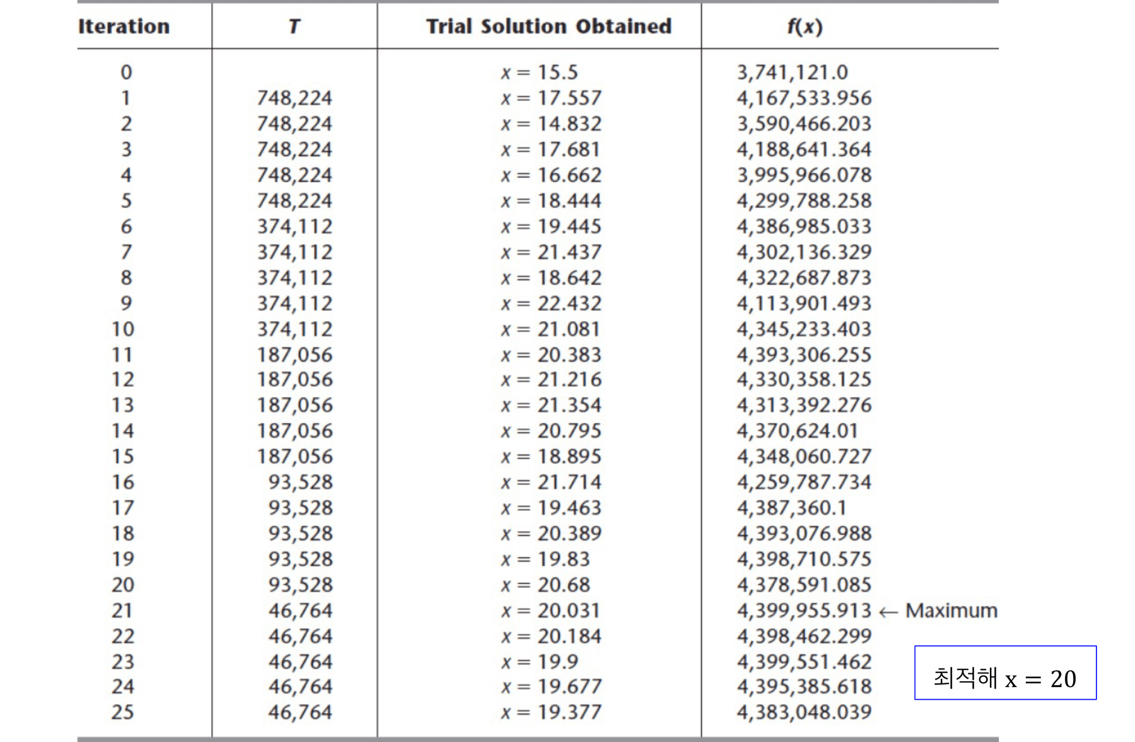 - • : 현재해(current solution)의 목적함수 값